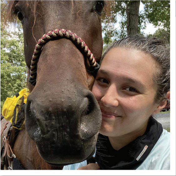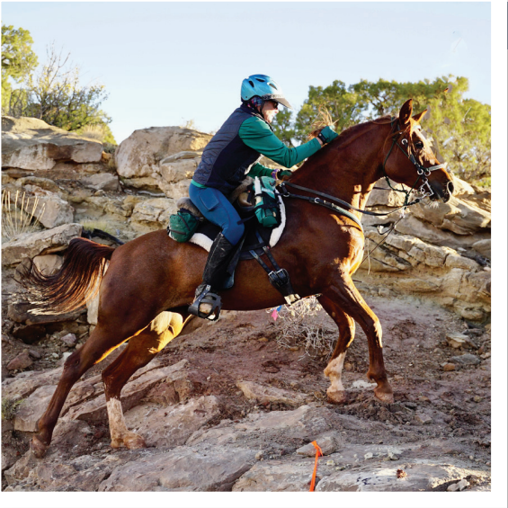 She enjoys endurance riding with her current partner Bellagio “B” and is bringing up her new one Southern Comfort V “SoCo.” She also enjoys doing triathlons and going on spontaneous adventures!