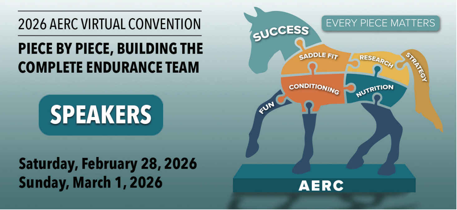 2026 AERC Virtual Convention Speaker Topics: Saddle Fit for Distance Horses, and Equine Muscle Injuries and Rehabilitation